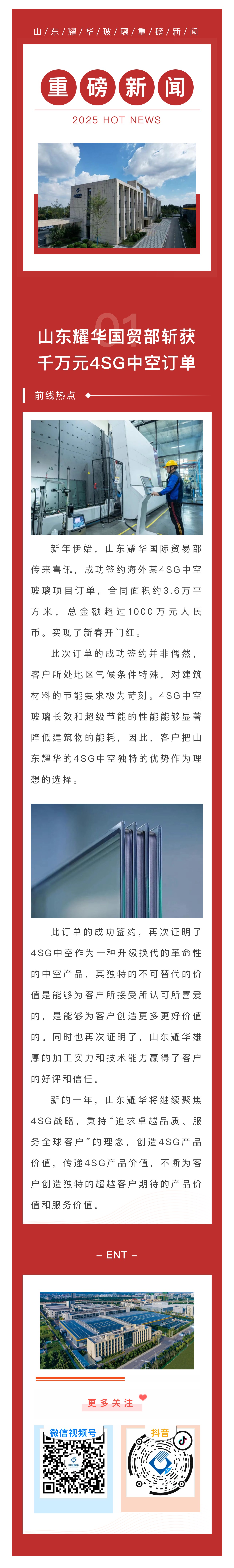 新春開門紅,奮力往前沖|山東耀華國貿部斬獲千萬元4SG中空訂單