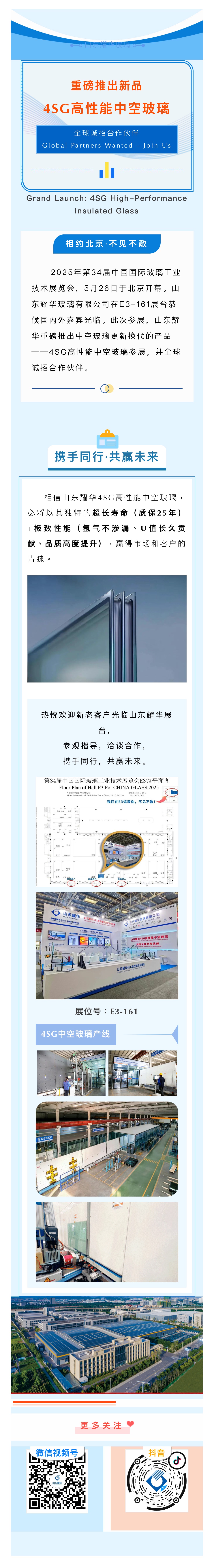 第34屆中國玻璃展丨山東耀華重磅推出新品—4SG高性能中空玻璃, 并全球誠招合作伙伴