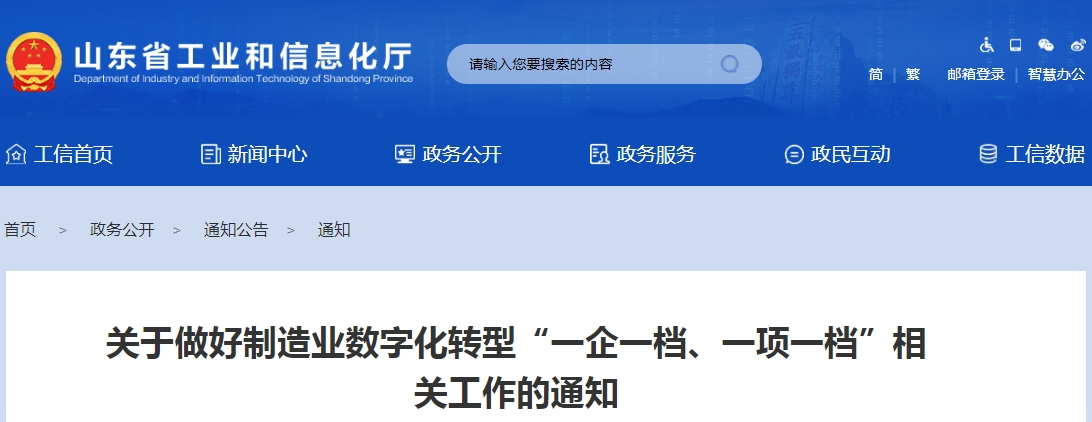 根據《山東省制造業數字化轉型提標行動方案(2023-2025年)》《全省規上工業企業數字化轉型工作方案(2024-2026年)》相關要求,為精準推動工業企業數字化轉型普及提升,現就制造業數字化轉型“一企一檔、一項一檔”工作通知如下: